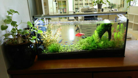 水槽のフィルター交換とライトスタンド自作 中年翁